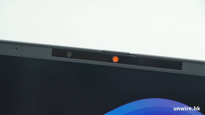 ▲熒幕頂部中央位置設有 webcam,不但可在視像會議時使用,而且亦可用於人臉辨識登入。它亦設有專為注重私隱的商務用家而設的物理遮蓋,方便不用時將鏡頭遮上。