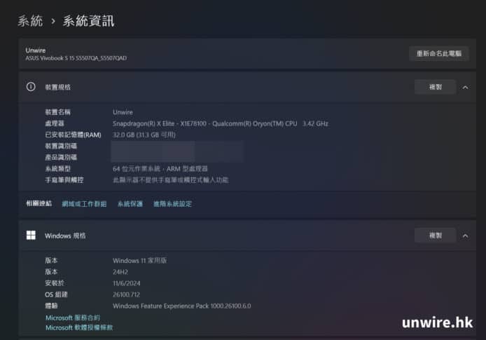 ▲Vivobook S 15 依然採用專業版的 Windows 11 作業系統。