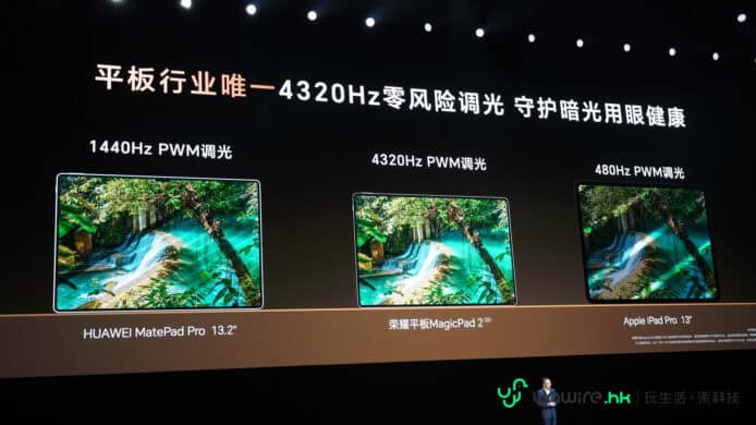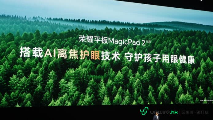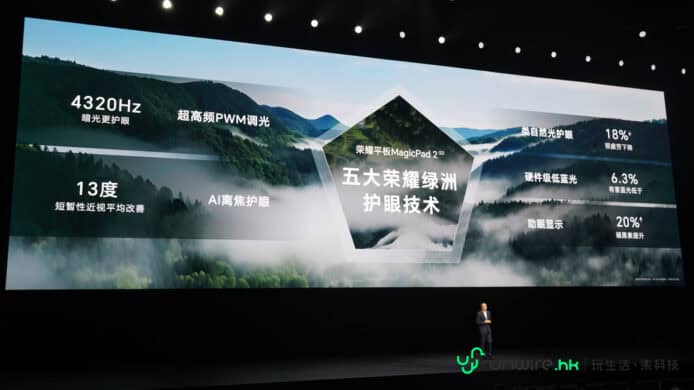 ▲此外,MagicPad 2 12.3″ 的熒幕亦與 Magic V3 一樣支援 AI 離焦護眼技術,亦是唯一支援 4320Hz 零風險調光功能的平板電腦,加上五大 Honor 綠洲護眼技術,令用家即時長時間瀏覽內容,理論上雙眼仍不會易感不適。