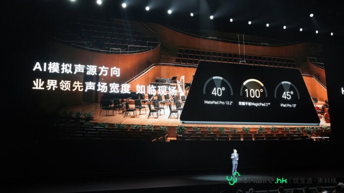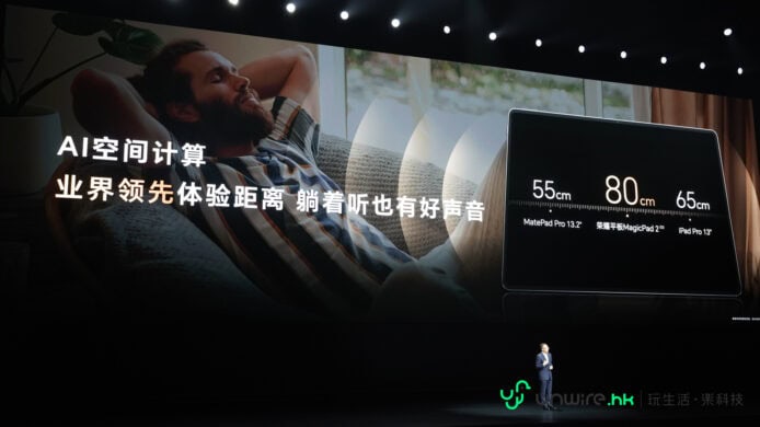 ▲MagicPad 2 12.3″ 更使用 AI 技術,不但可以模擬音源方向令用家欣賞音效時可以猶如置身現場一樣,更可作空間計算,令大家可以儘管將平板放在檯面,之後即使躺在梳化或床上,亦可以體驗到不錯的音質效果。