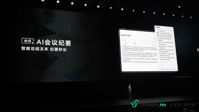 ▲平板亦可以使用 AI 功能,將冗長的會議紀錄撮要並編撰為簡單摘要,方便快速掌握重點。