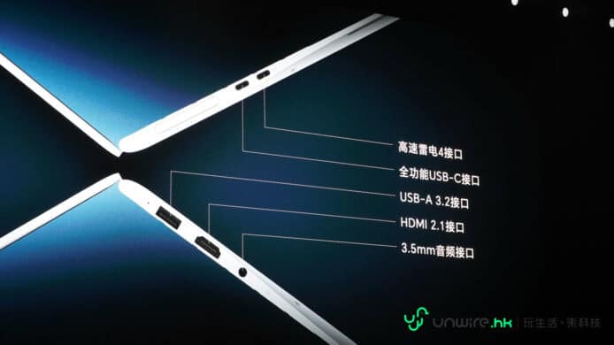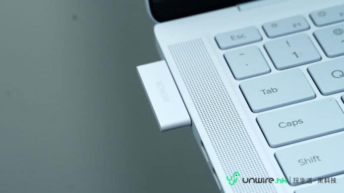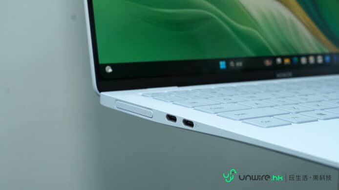 不少輕薄型的筆電,為了遷就機身盡量纖薄,也會捨棄不少常用端子,只保留較薄身的 USB-C 插槽,令大家外攜使用時有點麻煩;而 MagicBook Art 14,在纖薄的機身上,仍然保留十分齊全的端子配置,首先 USB-C 插槽已有兩個,一個支援 Thunderbolt 4,另一個亦擁有全功能設計,同時它亦配置了 USB-A 3.2 插槽、HDMI 2.1 輸出插槽及 3.5mm 耳機插孔,在如此纖薄的機身有如此齊全的端子,在現今的筆電界別中已屬少見,令用家外攜使用時,無需帶備轉接線 / 器也可以輕鬆接駁不同周邊產品,或者接駁顯示器或電視,將熒幕顯示輸出至大熒幕進行報告,確實十分方便。