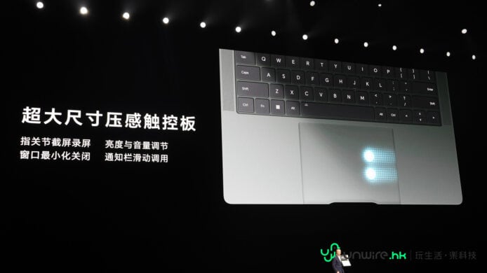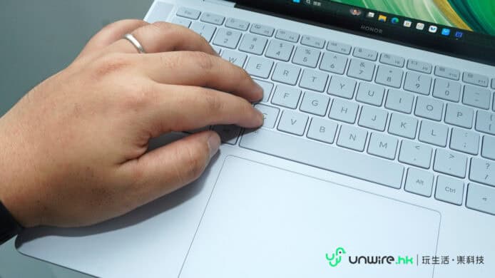 至於操控方面,除了之前提及可透過觸控式熒幕操作系統外,它亦設有與一般 14 吋筆電差不多佈局的鍵盤,筆者亦體驗過鍵盤按鍵面積夠大,而且具備足夠鍵程,長時間打字應該都頗舒服,而它的觸控板面積亦十分大,不但足夠進行多手指操控,而且它與 Huawei 的筆電一樣,邊位設有不同的體感操控功能,以手指拉動就可以調校亮度、音量、甚至進行不同系統操作,例如:以指關節擷圖或錄影熒幕顯示等,使用上十分方便。