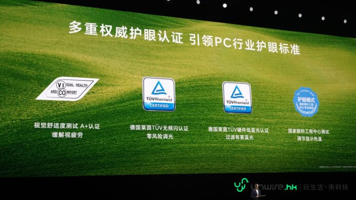▲此外,熒幕亦配備 Honor 綠洲護眼屏技術,支援 4320Hz 超高頻 PWM 零風險調光,亦獲得不同機構頒發的護眼標準認證。