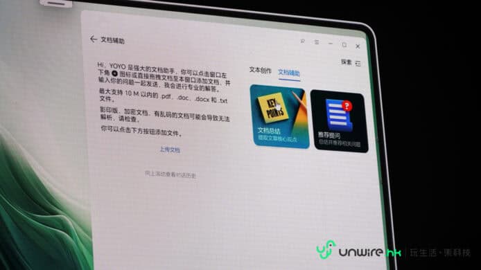 ▲另外,內建的 YOYO 助理更可透過 AI 功能,幫助用家進行文本創作或翻譯,甚至擷取文章重點等功能。