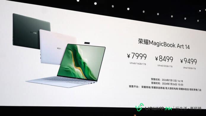 ▲定價方面,Honor MagicBook Art 14 筆電為 7,999 起(Ultra 5 / 16GB RAM / 1TB SSD,約 HK$8,614),將於即日開始接受預訂,並在 7 月 26 日正式開賣。