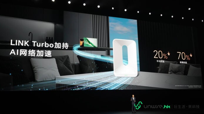 ▲榮耀路由 5 最特別的地方就是它支援最新的 Wi-Fi 7 制式,不但速度相比 Wi-Fi 6 路由器可提升 48%,而且足夠覆蓋約 1,200 平方尺的家居。它亦內建 LINK Turbo 加持及 AI 網絡加速功能,不但平均時延可降低 20%,極限時延更可降低 70%。