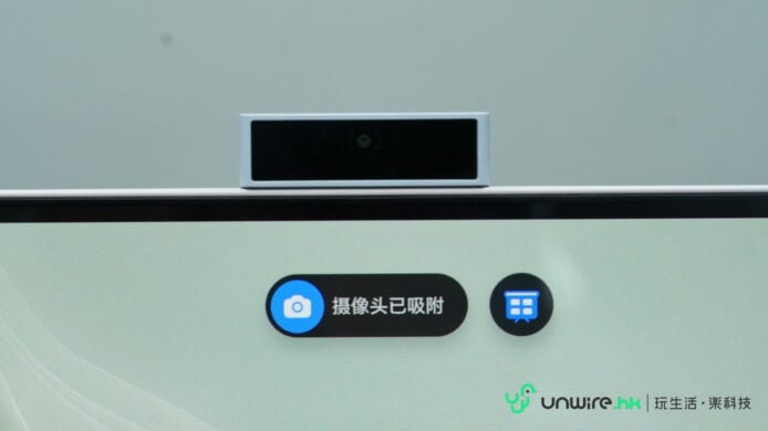 ▲只要將鏡頭放近熒幕頂部近中央位置放手,就會自動吸附在熒幕頂部位置。