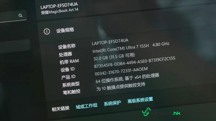 ▲硬件方面,MagicBook Art 14 內建了最少 Intel Core Ultra 5 處理器、16GB LPDDR5X RAM 及 1TB PCIe SSD,進行一般文書處理自然綽綽有餘,用來煲劇睇戲亦沒有任何問題,相信用來簡單執相甚至影片渲染,不怕慢一點點其實亦可以做到。