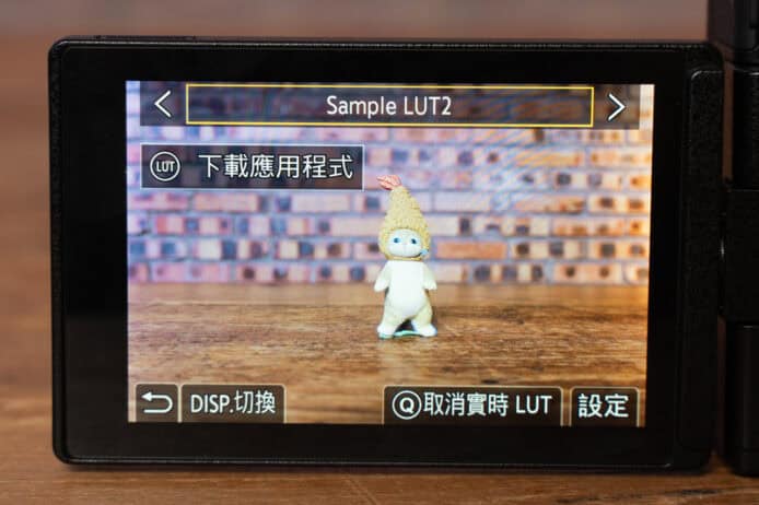 S9 機身設有獨立「LUT」實體按鍵,讓用家可以一鍵切換各種調色效果。現時機身內置 4 種 LUT,分別是「Vlog_709」、「Sample LUT 1」、「Sample LUT 2」、及「Sample LUT 3」,用家亦可自行下載不同 LUT 使用。