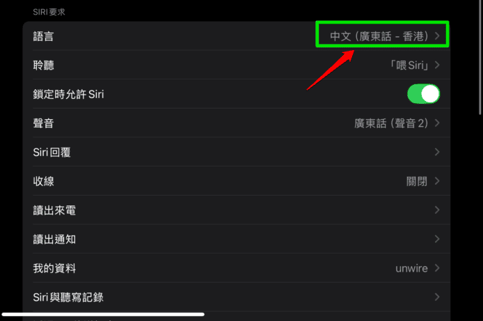 ▲另外在 Apple Intelligence 介面上,更改「Siri 要求」的語言設定;