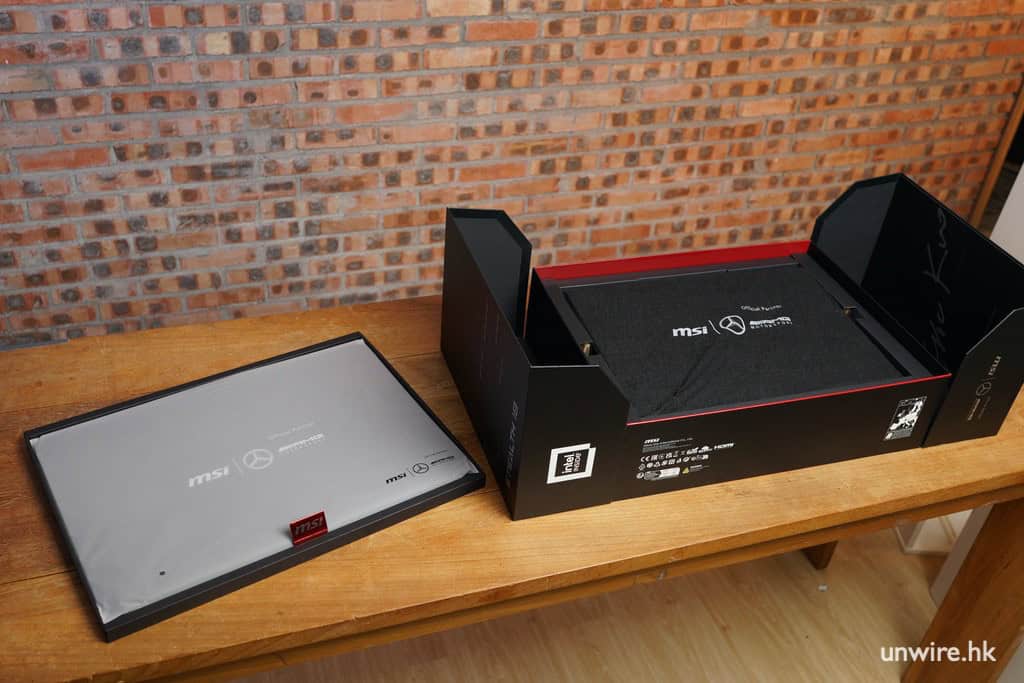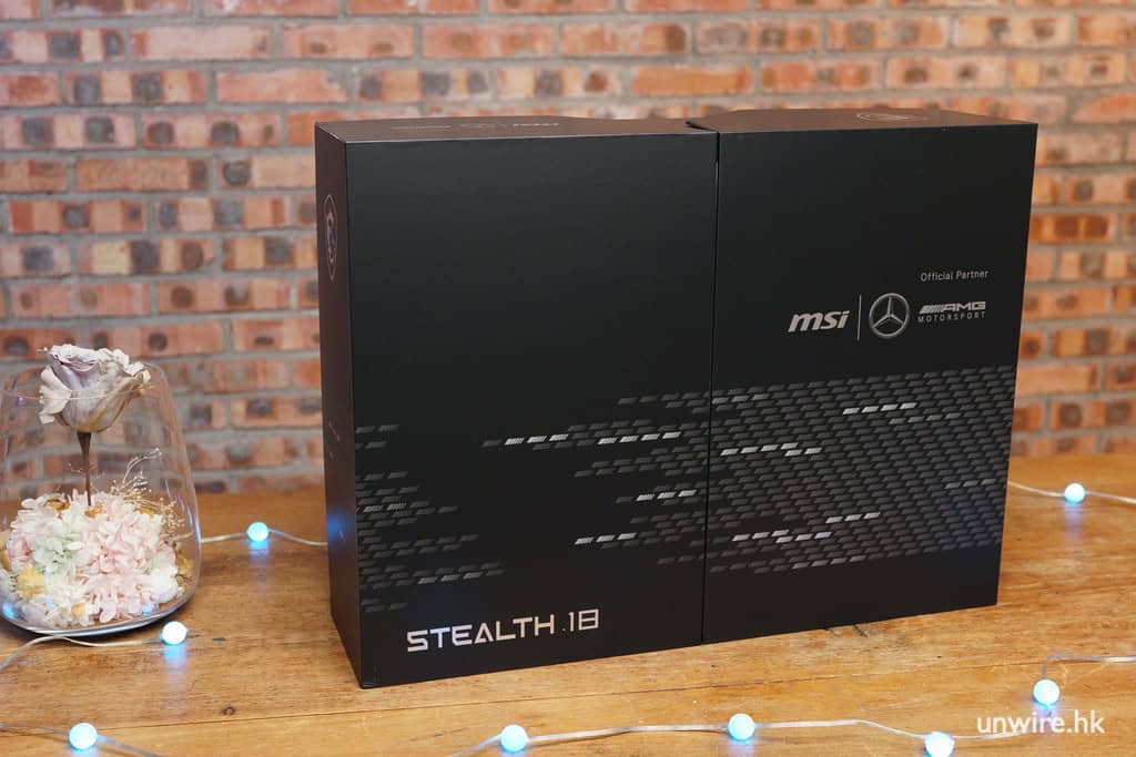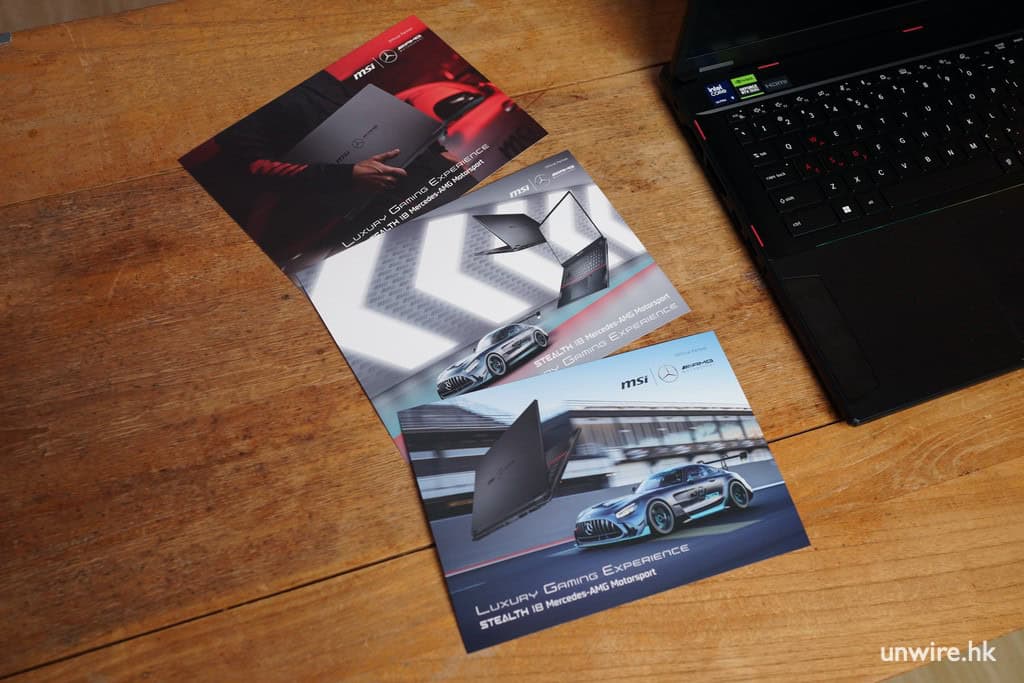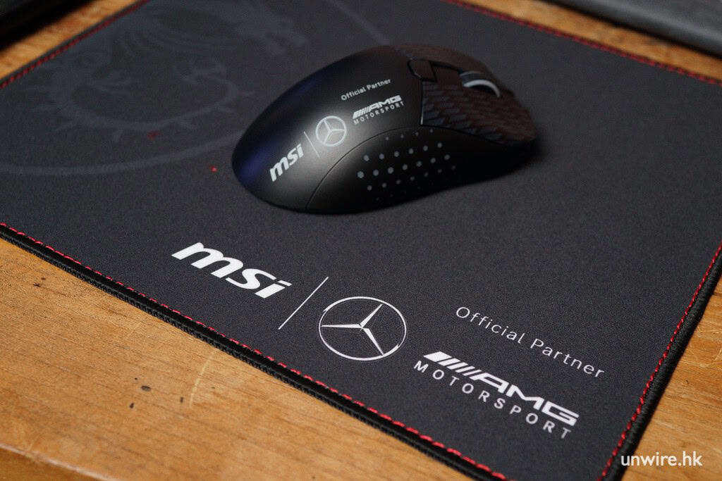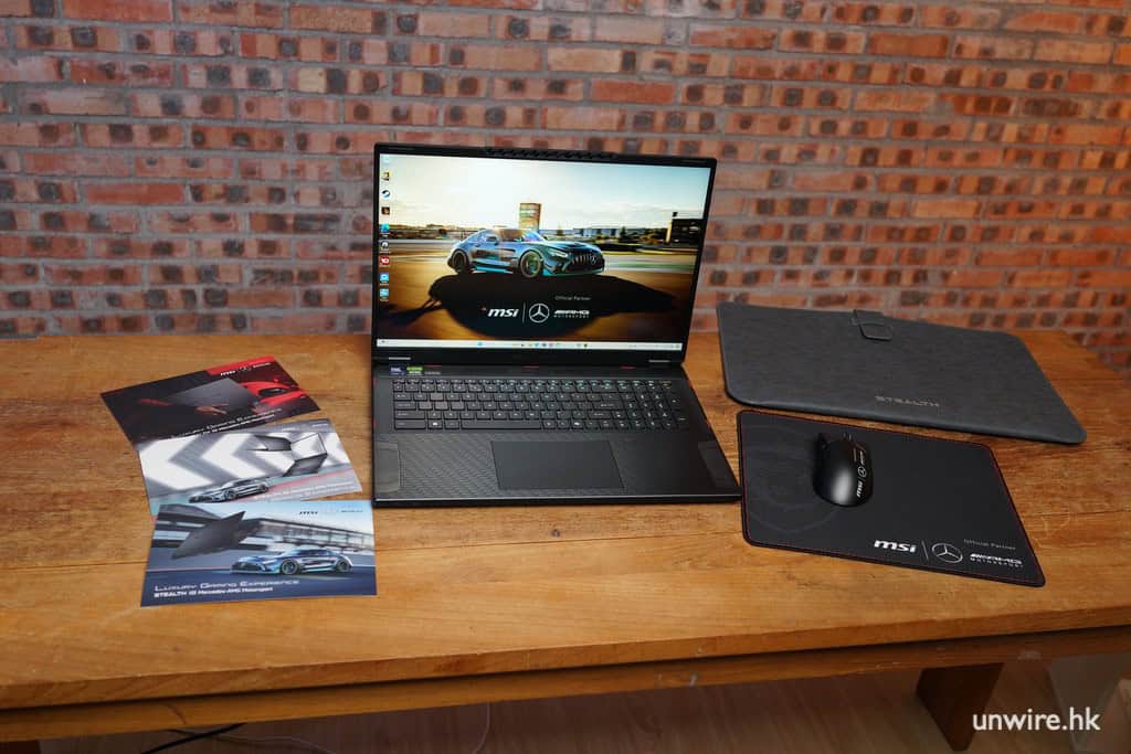 兩強聯乘的限定版電競手提電腦 MSI Stealth 18 Mercedes-AMG Motorsport 在開箱的一刻已感受到奢華感覺,限定版套裝內附隨的獨家聯絡限定配件,早已為玩家準備好的全副打機必備武裝。豪華的包裝盒內隨附來的配件有印上 MSI 與 Mecedes-AMG 的專用電競滑鼠,還有設計型格的滑鼠墊,確保玩家在戰場上極速瞄準目標。