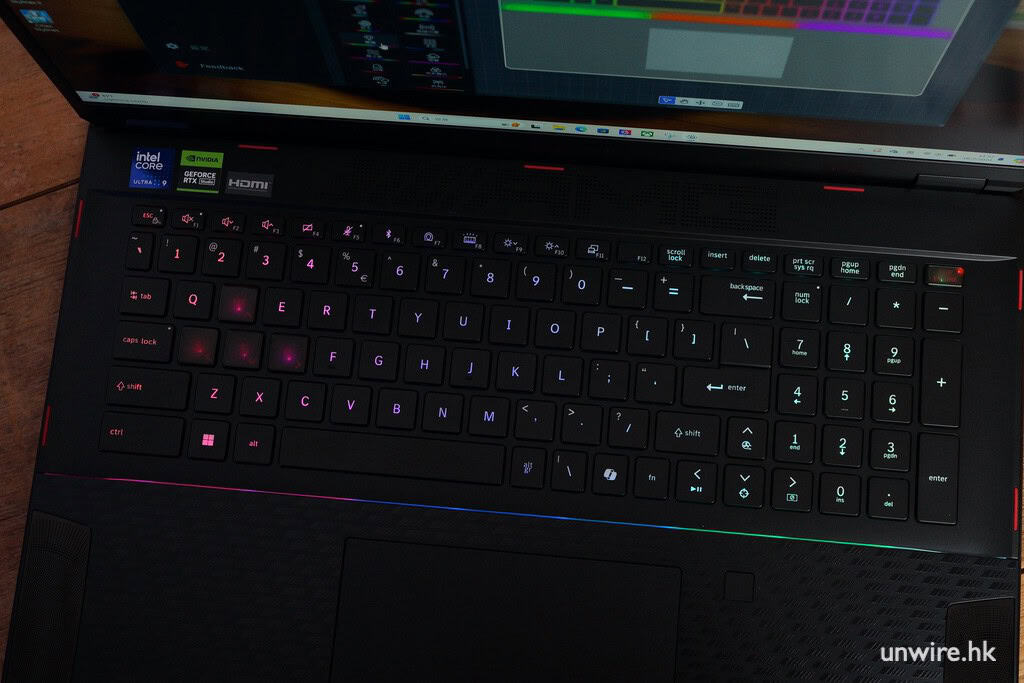 MSI Stealth 18 Mercedes-AMG Motorsport 用上全尺寸的 RGB 背光鍵盤,並為電競用家帶來獨特設計的 AWSD 方向鍵,採用特別材質,更加耐用。而鍵盤最特別是其開機電源按鈕印上「Start Engine」字樣,與賽車上發動引擎的概念相輝映。電腦提供大面積觸控板,用家也能輕鬆透過本機更流暢完成手頭上的工作,盡快投入打機世界。
