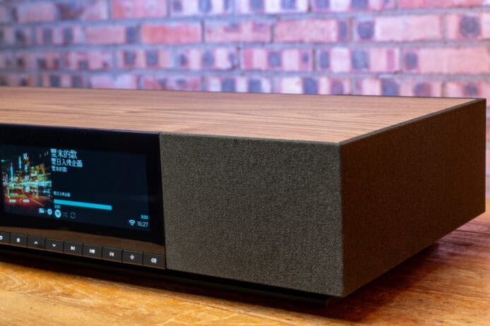 ▲獨一無二的胡桃木飾面上有 Cambridge Audio 的標誌