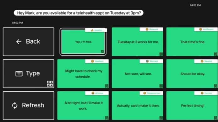▲整合 ChatGPT 後的新 BCI 介面,可為使用者提供各種回應選項