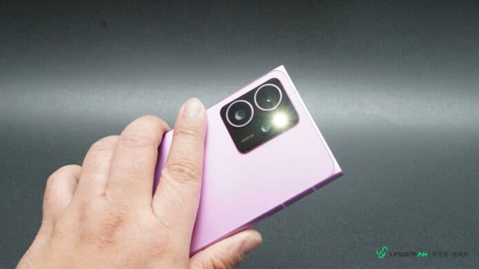 ▲機身採用了全金屬設計,而機背雖然採用強化玻璃物料,但金屬感亦頗重,加上這個霓紅粉色設計,漂亮程度甚至可媲美不少旗艦手機。