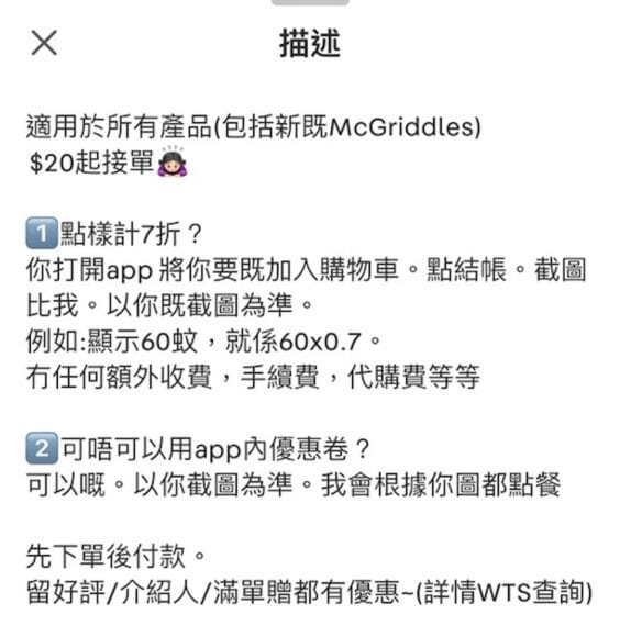 二手平台麥當勞員工 7 折代訂 McGriddles 網民質疑員工轉售福利合法性