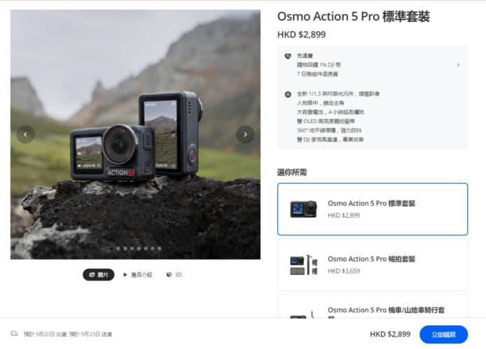 DJI Action 5 Pro官網:https://store.dji.com/hk/product/osmo-action-5-pro?vid=170301