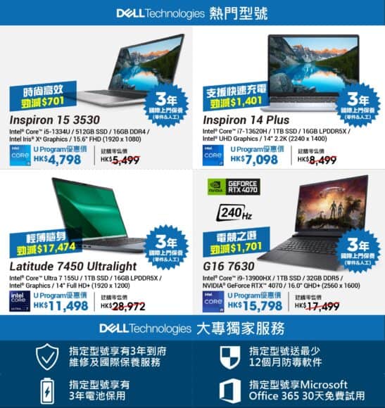 今年的優惠計劃集合了 Acer、Asus、Dell、HP 及 Lenovo 等知名品牌,優惠最高達三九折,最多可以慳足 HK$9,000。除此之外,指定產品均享有大專專屬 3 年原廠保養,部分品牌更提供貼心的上門維修服務。其中熱門型號更附加意外損壞保障,使用更安心。