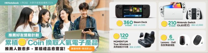 只要成功推薦一個朋友,在優惠計劃中消費每滿 HK$3,000,推薦人就能獲得 2 個 M Coin,而被推薦朋友也能得到 1 個 M Coin。推薦和消費越多,獲得的 M Coin 就越多,累積的 M Coin 可用於兌換超過七十種熱門產品,推薦朋友 3* 個朋友即兌換 First Champion 旅行 Charger,甚至是大熱的 Steam Deck 手提遊戲機。
