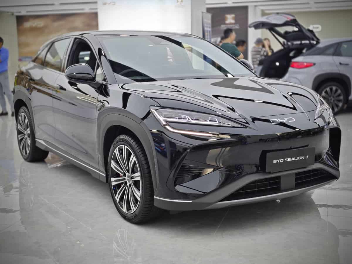 全新比亞迪 SEALION 7 為純電動中型 5 座位 SUV,分為 230kW 單馬達後驅版及 390kW 雙馬達 4 驅版兩款型號。比亞迪 SEALION 7 提供黑色、白色、亞特蘭蒂斯灰及迷迭灰 4 種顏色選擇,根據海洋美學設計,鬼面罩更以 Ocean-X Face 造型設計。