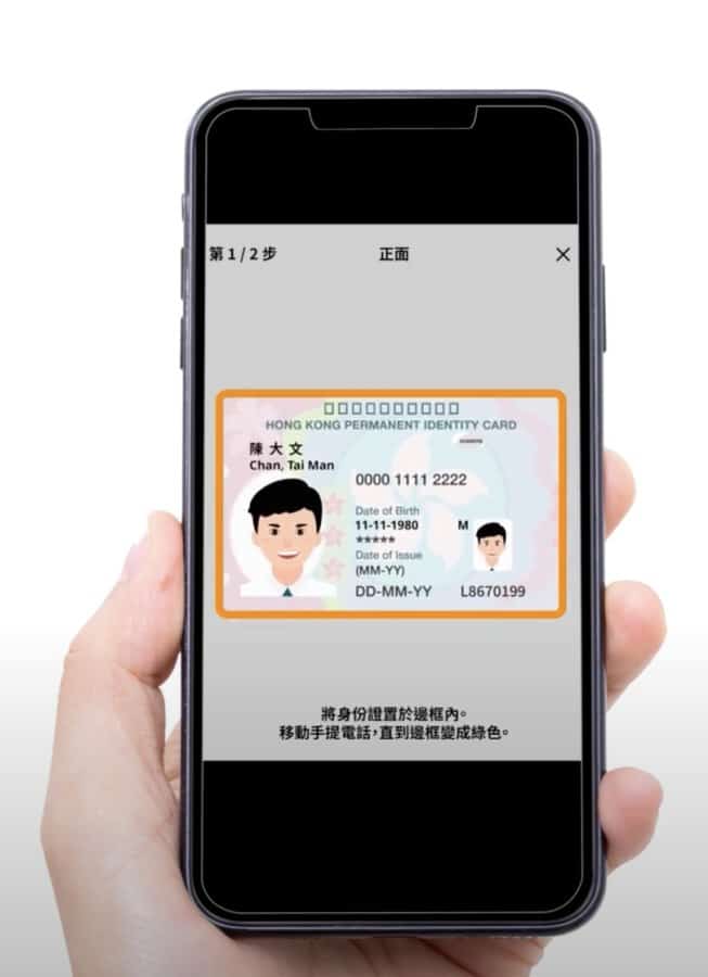 如果你選擇使用電子身份認證,用手機掃描身份證時,光線要充足,身份證要放在平面和沒有燈光反射的位置。而在進行容貌辨識時,要注意背景是否簡潔,及鏡頭內沒有其他人物出現。建議在淨色或白色的背景下進行辨識,會更容易完成。