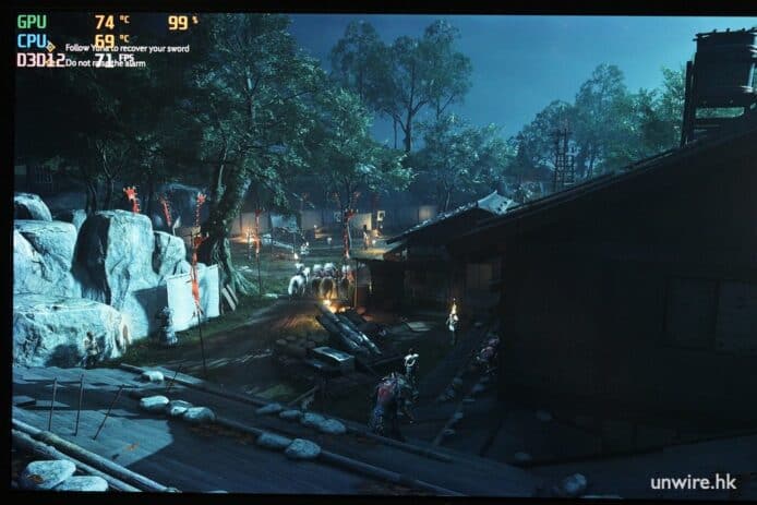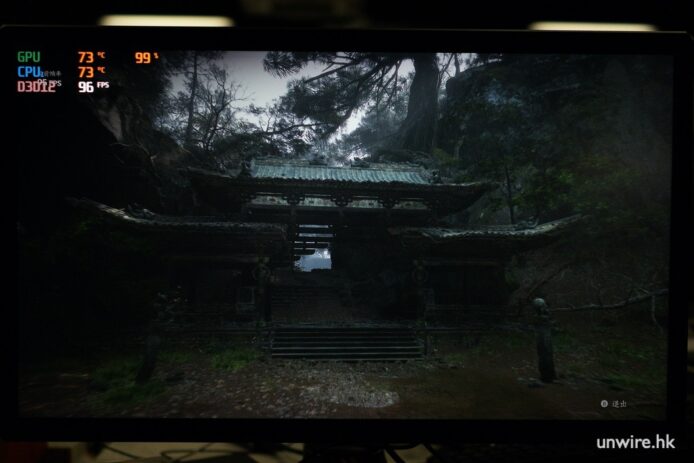 附註:以 Nvidia FrameView 作測試工具,遊玩遊戲初段村內潛行路線、紅葉湖景與老父劍術教學的一段