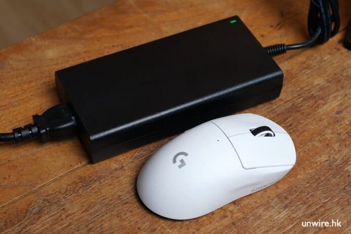 ▲但也要留意電腦需要拖著一個體積不小的變壓器,就同電競筆電一樣。這個變壓器大約是一隻滑鼠再大一點