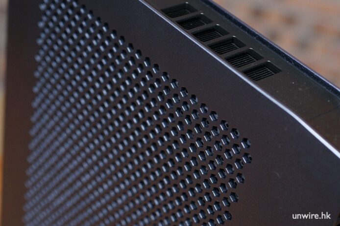 ▲機背大量開孔背後就是電腦風扇,同電腦本身,以大面積散熱。但出風口主要在機身、機底