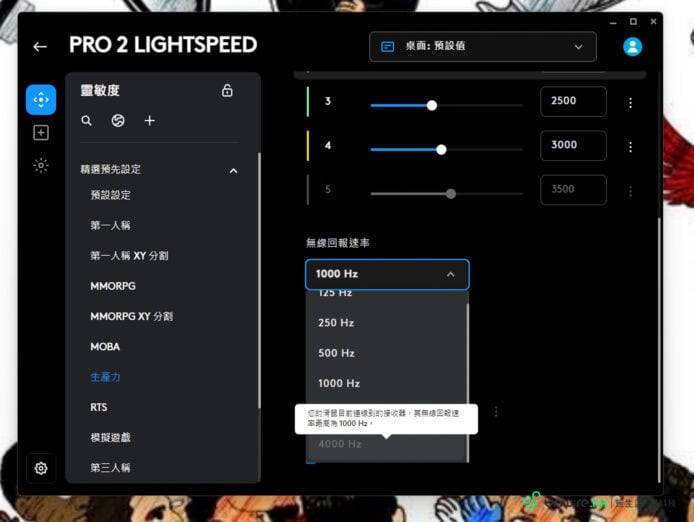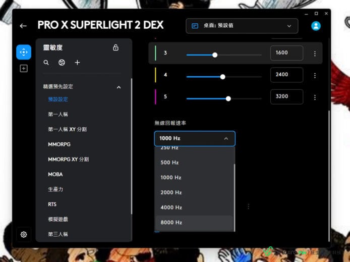 ▲無論是 Pro 2 還是 Pro X 2 Dex,有線回報速率也可高達 1000Hz,對於電競選手來說已是十分足夠。