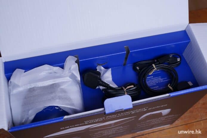 ▲打開盒後,可即時看到所有配件,包括電源線、USB充電線、HDMI 線、水平式支架、DualSense 無線控制器等。