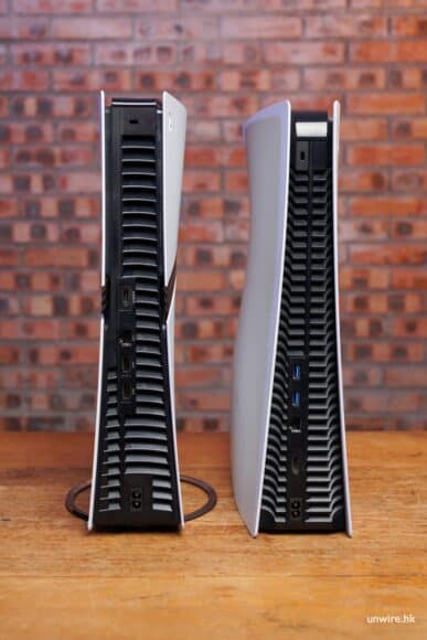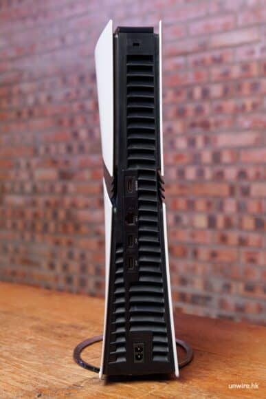 主機正面全部改成 USB Type-C 插口,共有 2 個。這也迎合好多 PS5 配件,例如無線耳機、第三方手掣都用上 USB 插頭的特點。