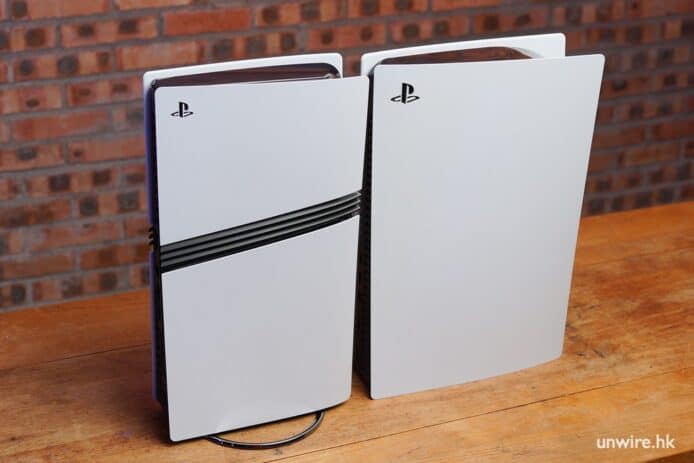 看兩部機的側面,全新 PS5 Pro 主機也比較瘦。