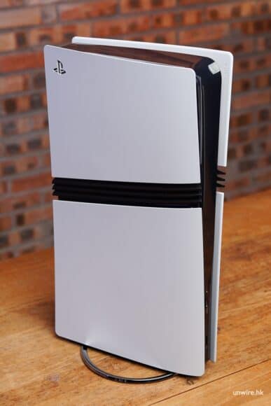 再細看遊戲主機,你可發現它的體積非常細小,比起 PS5 最原始的第一個版本(非 Slim 版)要瘦得多。實際量度的重量只為 3.056kg,比起原始版 PS5 的 4.482kg 輕上許多。