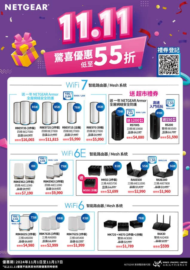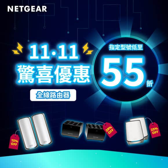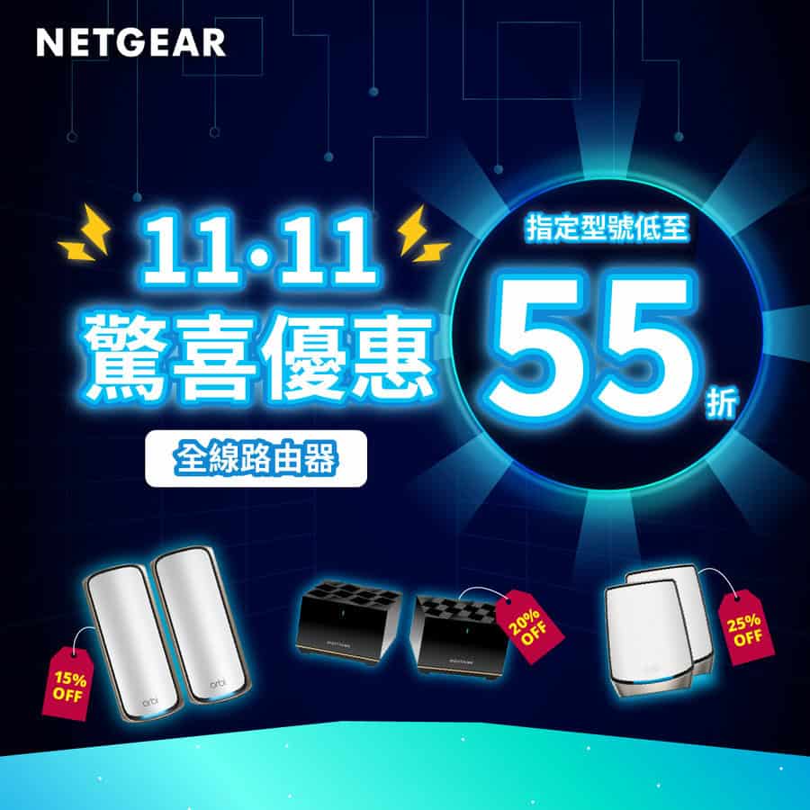 NETGEAR 於即日起推出雙 11 限時優惠,多款重點產品皆有特價,而當中最備受關注的 WiFi 7 產品更有低至 78 折的優惠。大家要把握是次機會去購買心頭好,令家居網絡生活更上一層。