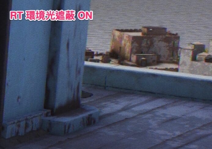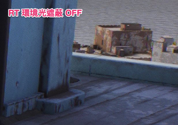 RT 環境光遮蔽:使用光追計算額外環境光遮蔽的圖像細緻度。在重新運算之下,有些地方會加入新增的陰影,令到場景看上去立體感更加好。