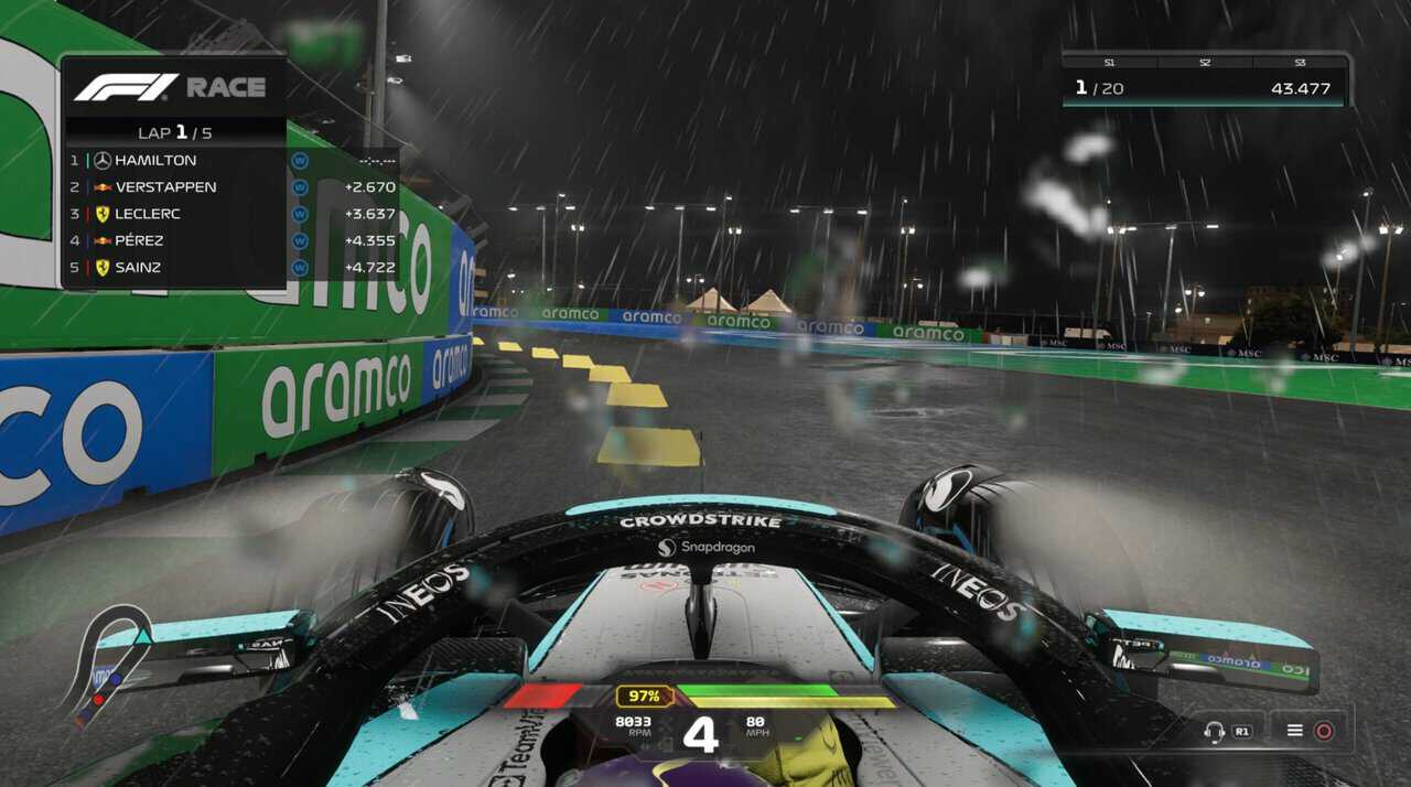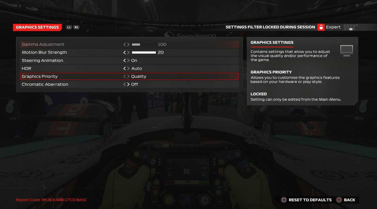 - 品質模式:在 4K/60Hz下運行並啟用 PSSR 光線追蹤,在賽道濕滑、雨景效果上展現更真實的反射與光影變化,特別在夜間比賽的沉浸感中有所加強。
