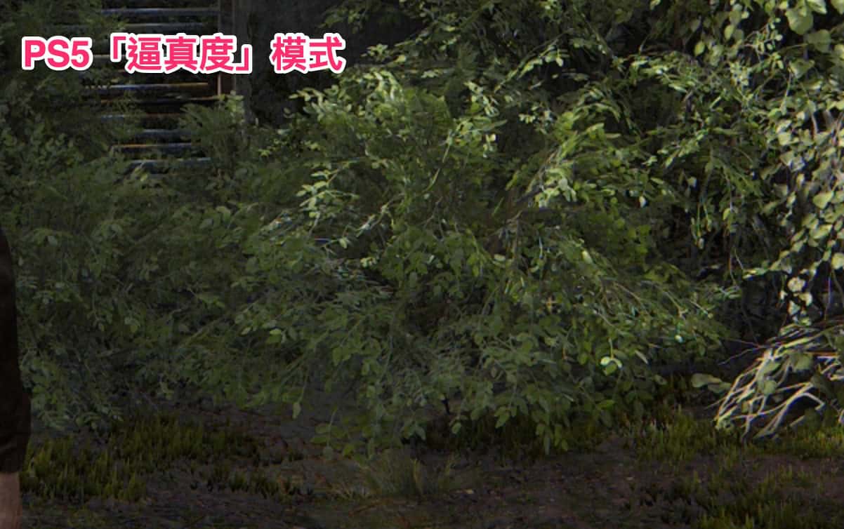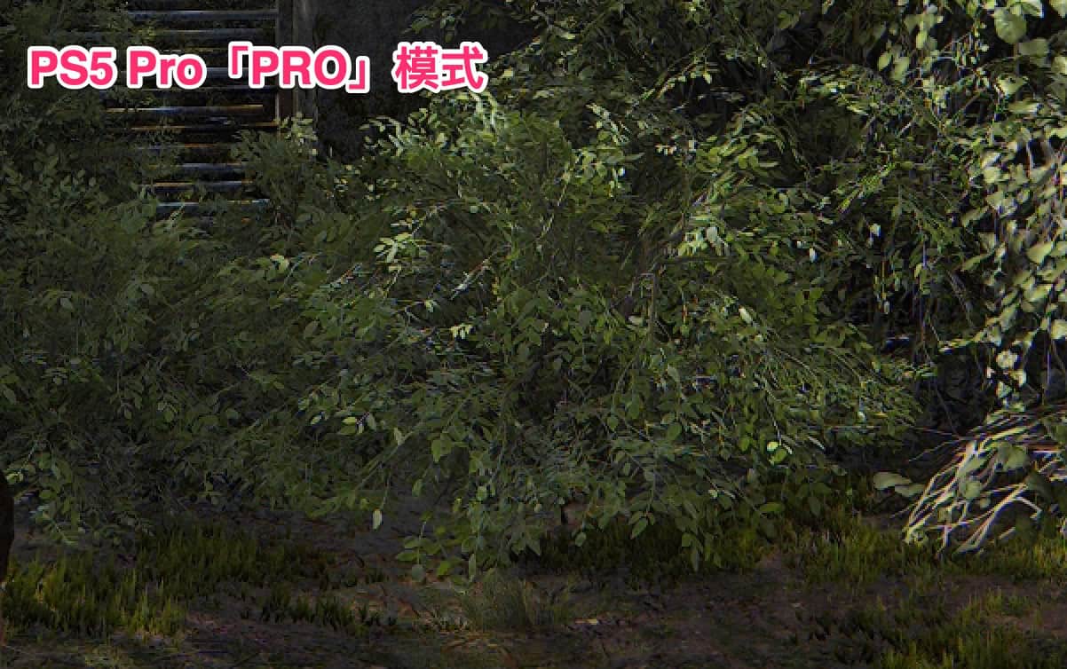 ▲例子 1C:PS5 Pro 的「PRO」模式整體清晰度,特別是綠色植物的清晰度明顯更好