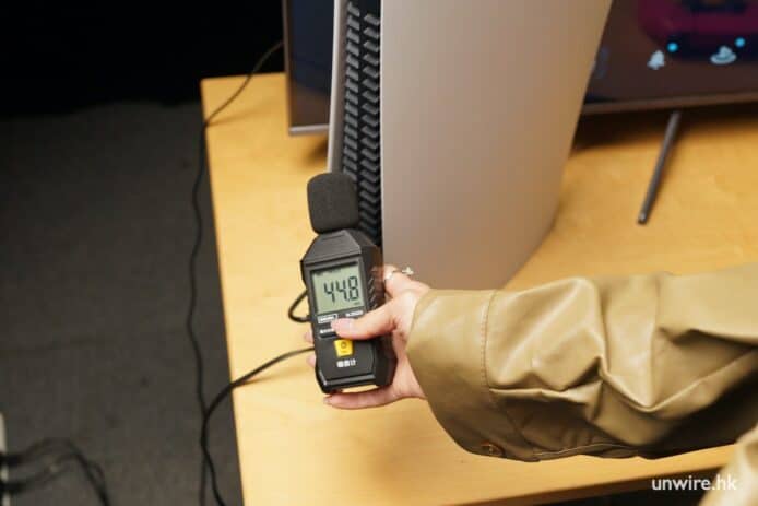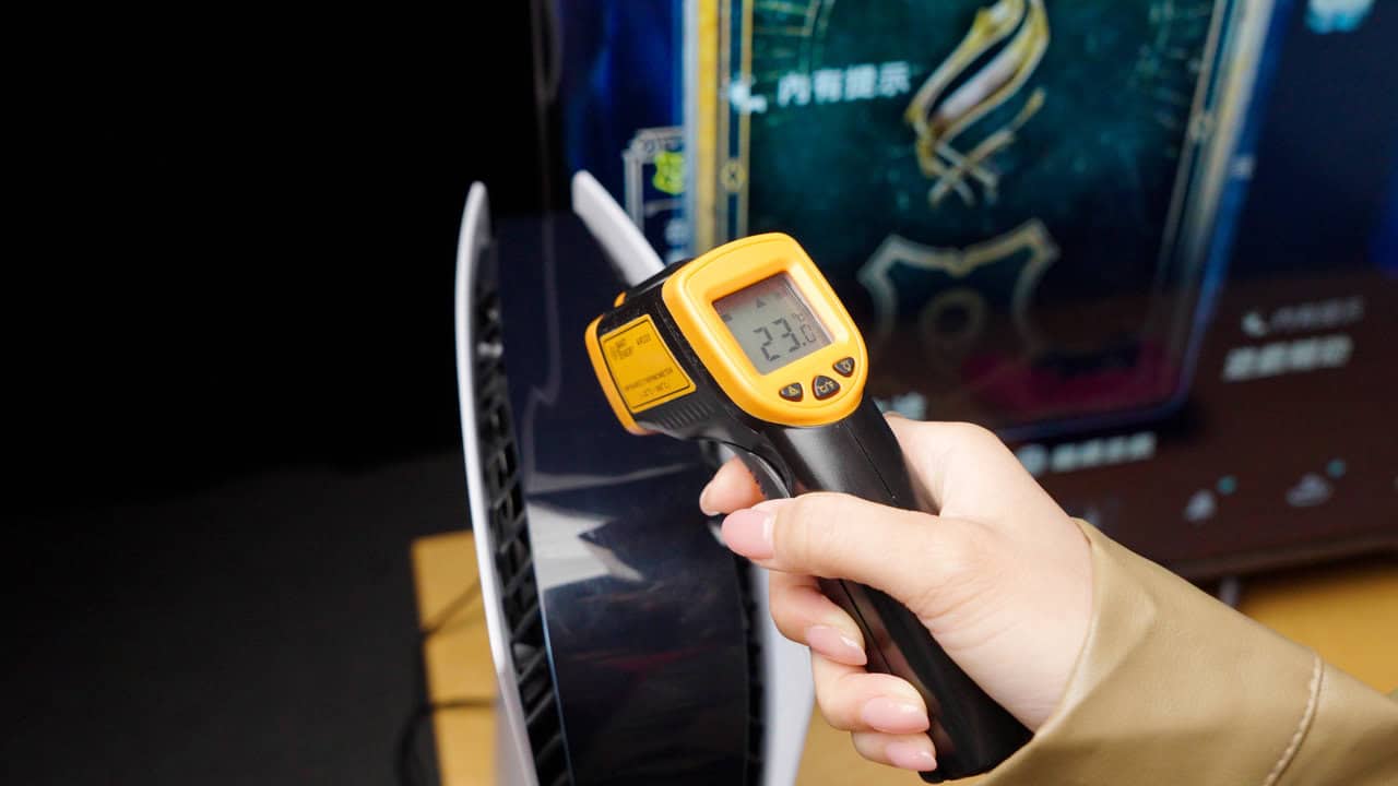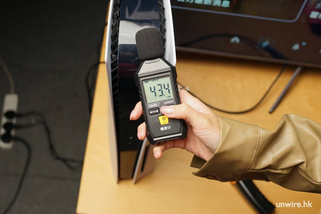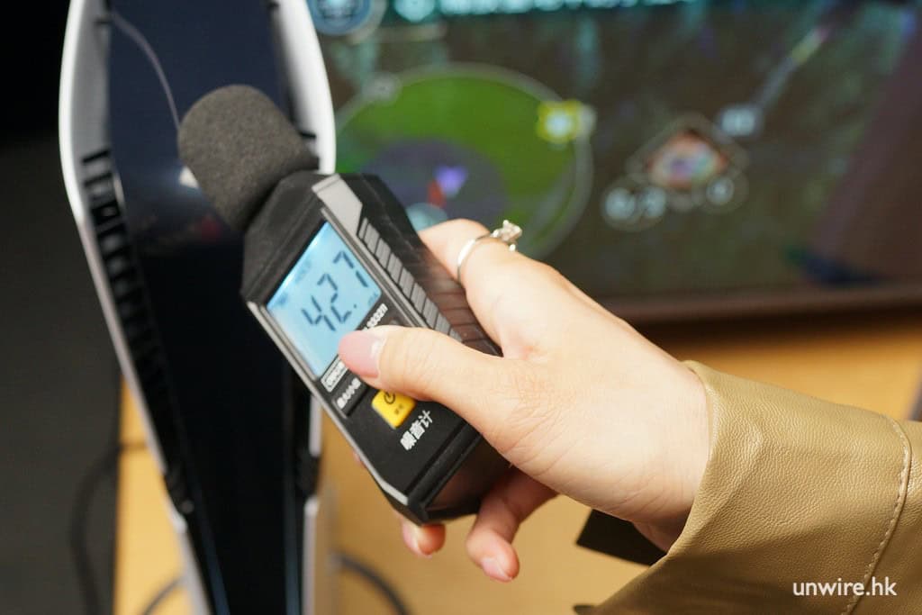 我們測試了初代 PS5 和 PS5 Pro 在玩《霍格華茲的傳承》30 分鐘後的溫度。結果顯示兩者的散熱表現非常相似,PS5 Pro 的機背溫度為 41.2℃,而 PS5 為 42.1℃,差異不大。只是用家較易接觸到的機頂,PS5 Pro 會較為涼快(PS5 Pro:21.4℃, PS5: 23℃)。噪音方面,我們在底噪 40.7 分貝的房間內進行測試,開機 30 分鐘之後 PS5 Pro 的機頂噪音為 42.7 分貝,機背為 45.9 分貝,而初代 PS5 機頂的 43.4 分貝以及 44.8 分貝。就同 Slim 版一樣,Pro 版構造令面向玩家一方的機頂會稍微安靜,反而玩家輕難聽到的機背噪音較大,結果就是玩家實際聽到的噪音較小。尤其是在一米的遊戲距離下,基本聽不到風扇聲音,夜晚的遊戲體驗不會被噪音打擾。