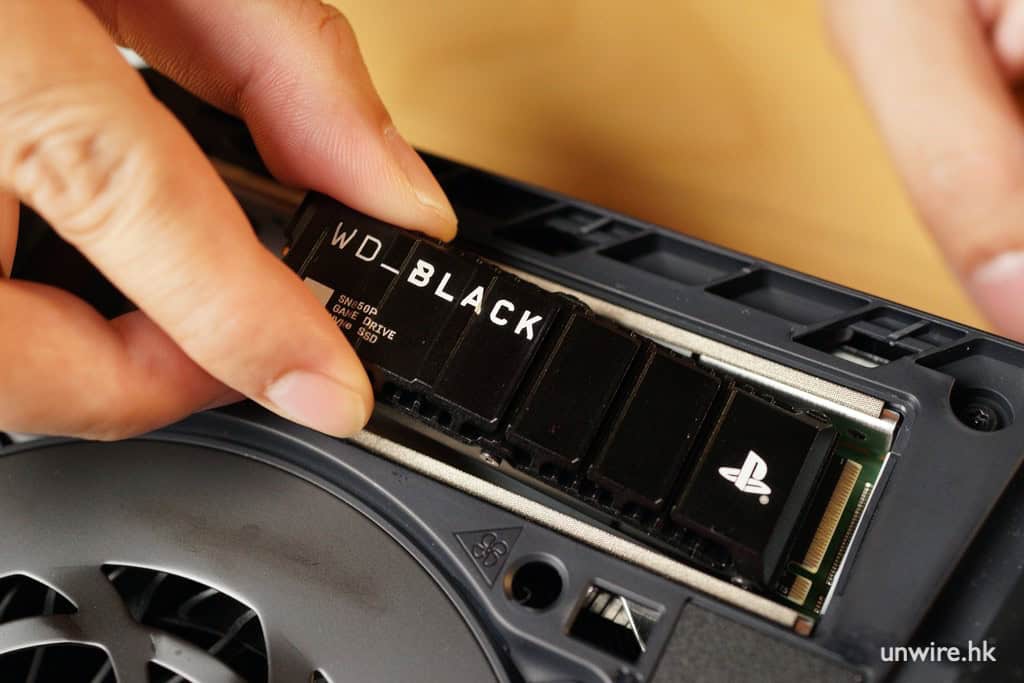PS5 Pro 同過往的機款一樣,提供一個可 M.2 NVMe SSD 擴展插槽。玩家們可在市面購買 M.2 NVMe SSD 為主機增加容量。例如這款有 PlayStation 官方授權的 Western Digital WD_BLACK SN850P NVMe SSD,今次借來的型號就有 2TB 容量。它已經附設有散熱片,比一般 SSD 產品有更強散熱能力。