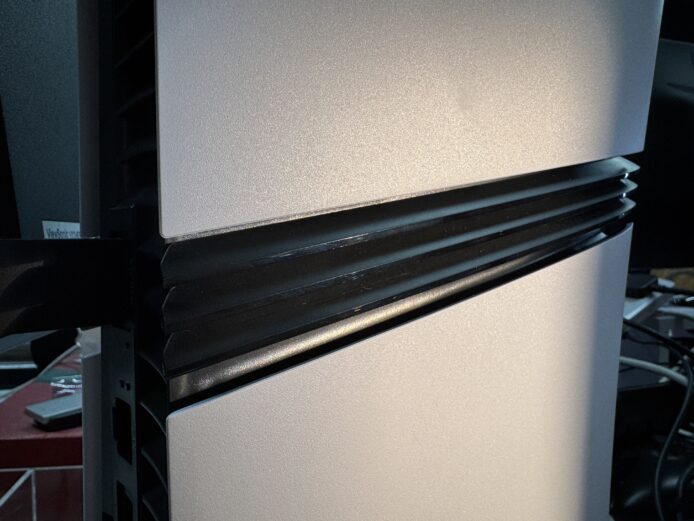 散熱設計延續了 PS5 的風格,機頂部分無散熱孔,減少積塵風險,但黑色外殼容易留下指紋。值得注意的是,PS5 Slim 的光碟機可與 PS5 Pro 共用,但另購的外殼無法兼容。