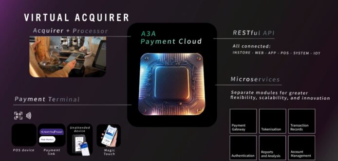 憑著以上基礎雲端服務,A3A 開發出整合 VISA、MasterCard、AMEX、JCB 和銀聯等主要發卡機構的電子支付收款解決方案,這項創新不僅降低處理支付時的成本和複雜性,還透過 API 提供了豐富的數據和實時交易洞察,如實時交易款項,為商家提供友好的用戶體驗。