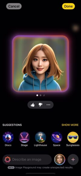 Image Playground 是 iOS 18.2 新推出的獨立應用程式,用家可以使用相片及指令生成各種風格的有趣圖像,每次會生成多張圖像供用家選擇。用家可以在 iMessage、Freeform 及其他應用程式使用 Image Playground 生成各式各樣的圖像。,所有在 Image Playground 生成的圖片均可使用 iCloud 同步至你所有 Apple 裝置。有興趣看看如何使用 Image Playground 的朋友可以看看小編早前分享的教學(教學連結)。