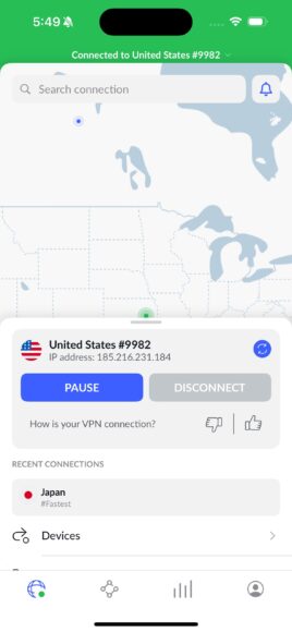 ▲使用 VPN 連接美國 IP