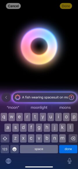 開啟 Image Playground 後,你可以直接輸入文字指令,要求 Apple Intelligence 幫你生成各式圖片。小編輸入了「A fish wearing spacesuit on moon(月球上有一條身穿太空衣的魚」,不消數秒,Image Playground 就可生成 4 張精美的圖片。