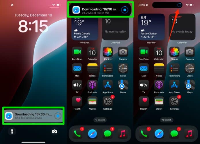 ▲可以在鎖定畫面及動態島看見下載進度