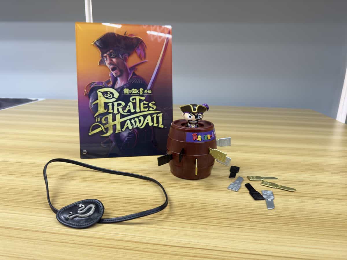 香港 SEGA 遊戲代理近日舉辦《人中之龍 8 外傳:夏威夷海盜 Pirates in Hawaii》試玩活動,小編作為系列 fans 也親身到訪代理安排好的試玩機,體驗這款由極受玩家歡迎的真島吾朗在夏威夷變身海盜的冒險故事。今次珍藏版附屬的眼帶,還有由日本玩具大廠 Tomy 製作的《真島吾朗危機一発》遊戲都來到香港,等小編帶大家去睇睇。