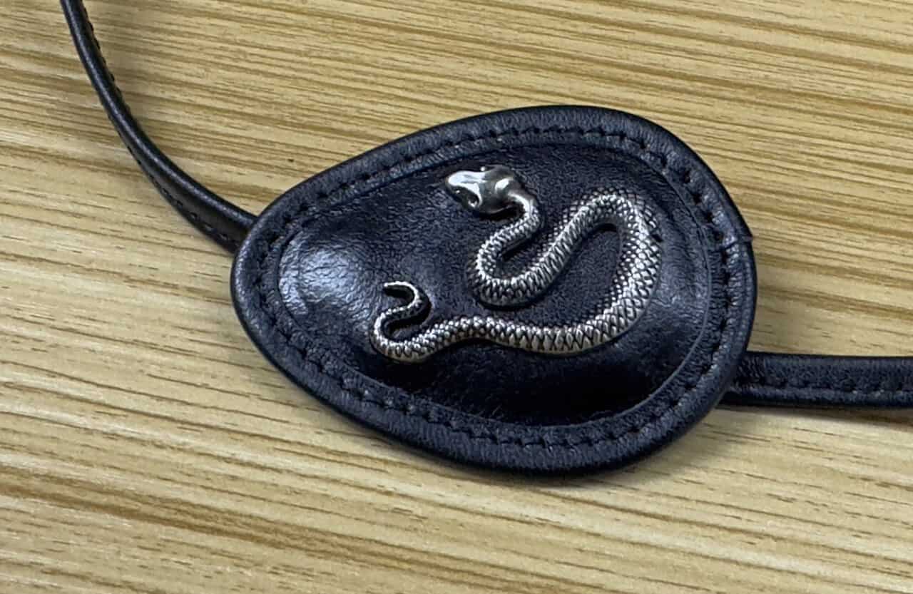 珍藏版另一附隨的眼帶配飾,同樣製作精巧,用上仿皮革物料製作,眼帶上的金屬蛇紋圖案的質感也非常好,用家戴出街一定非常 Sharp 醒。