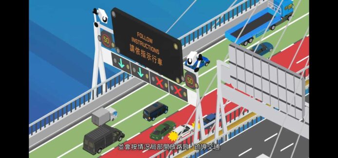 李耀培進一步解釋,當事故發生時,高架顯示屏會向駕駛人士發出即時警示,讓他們了解前方情況及可通行的行車線。現場人員也可善用路肩指揮車輛,保持三線行車,從而大大減少擠塞的機會。他認為,試行計劃有助駕駛者熟悉及適應新系統,未來可在青馬大橋、屯門公路等主要幹道推廣。