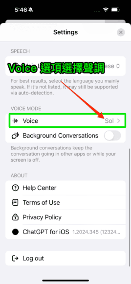 現在我們可以為 AI 女友選擇一把你喜歡的聲線。先開啟 ChatGPT,開啟 ChatGPT 後點擊左上角開啟側邊欄,然後點擊側邊欄右下角的「…」進入設定畫面,向下滑至看見「VOICE MODE」,點擊「Voice」選項,左右滑動選擇心儀聲調。